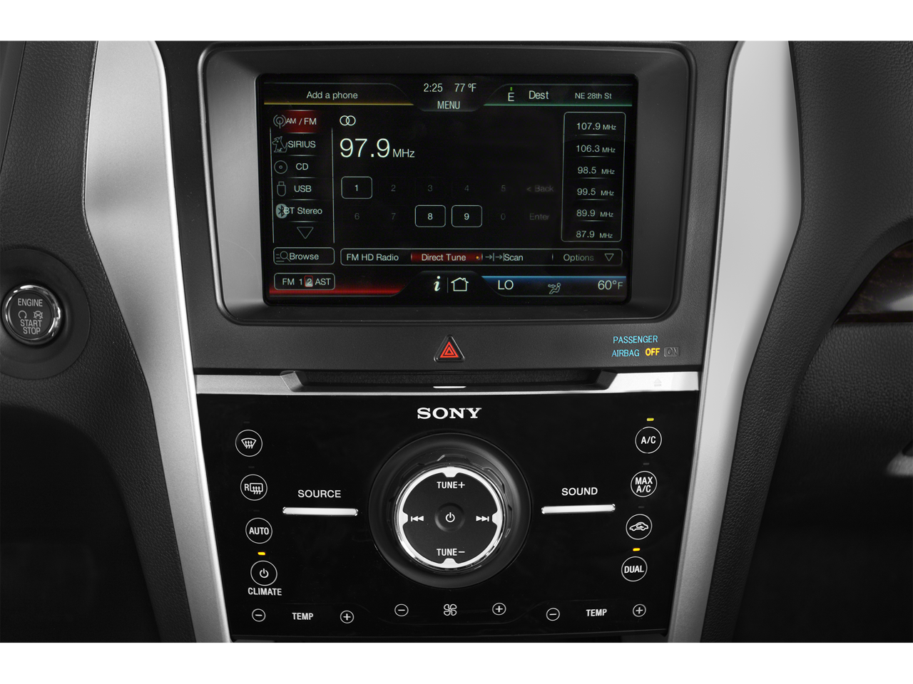 - Radio: Sony Audio System w/12-Speakers -inc: HD Radio, and SiriusXM satellite radio, Note: SiriusXM satellite radio includes 6 month prepaid subscription (48 contiguous states), Service not available in Alaska or Hawaii