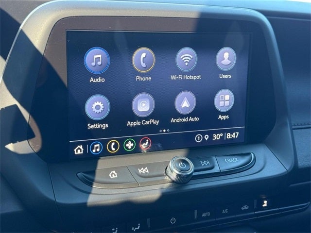 - Audio system, Chevrolet Infotainment 3 system, 7" diagonal color touchscreen, AM/FM stereo. Additional features for compatible phones include: Bluetooth® audio streaming for 2 active devices, voice command pass-through to phone, Apple CarPlay and Android Auto capable.