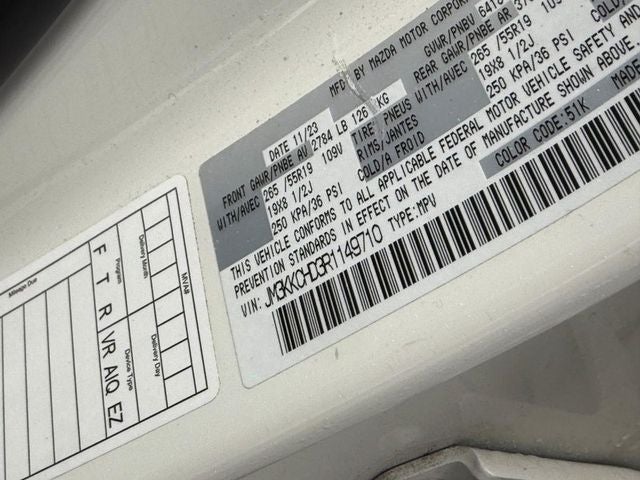 2024 Mazda CX-90 3.3 Turbo Preferred Plus **ANOTHER WEBER 1-OWNER VEHICLE**, **Bluetooth® HANDS FREE MOBILE**, **HEATED SEATS**, **KEYLESS ENTRY**, **REAR VIEW BACKUP CAMERA**, **MOONROOF/SUNROOF PACKAGE**, **LEATHER SEATING**, **7 PASSENGER SEATING**, **REMAINDER OF FACTORY WARRANTY**, **USB PORTS**, **SUPER CLEAN**, **APPLE CAR PLAY**, **CLEAN VEHICLE HISTORY REPORT**, 3rd row seats: bench, 4-Wheel Disc Brakes, 8 Speakers, ABS brakes, Air Conditioning, Alloy wheels, AM/FM radio, AppLink/Apple CarPlay and Android Auto, Auto High-beam Headlights, Automatic temperature control, Brake assist, Delay-off headlights, Dual front impact airbags, Dual front side impact airbags, E911 Automatic Emergency Notification, Electronic Stability Control, Emergency communication system: MAZDA CONNECT, Exterior Parking Camera Rear, Front dual zone A/C, Fully automatic headlights, Heads-Up Display, Heated door mirrors, Heated Front Bucket Seats, Infotainment System Voice Command, Knee airbag, Leather Seat Trim, Mazda Connected Services, Occupant sensing airbag, Overhead airbag, Pandora Internet Radio Integration, Panic alarm, Power door mirrors, Power driver seat, Power Liftgate, Power moonroof, Power passenger seat, Power steering, Power windows, Radio Broadcast Data System Program Information, Radio data system, Radio: AM/FM Sound System, Rain sensing wipers, Rear air conditioning, Rear window defroster, Remote keyless entry, Rhodium White Premium Paint Charge, SMS Text Msg Audio Delivery & Reply, Speed control, Split folding rear seat, Spoiler, Steering wheel mounted audio controls, Telescoping steering wheel, Tilt steering wheel, Traction control, Turn signal indicator mirrors, Wheels: 19 x 8.5J Aluminum Alloy.